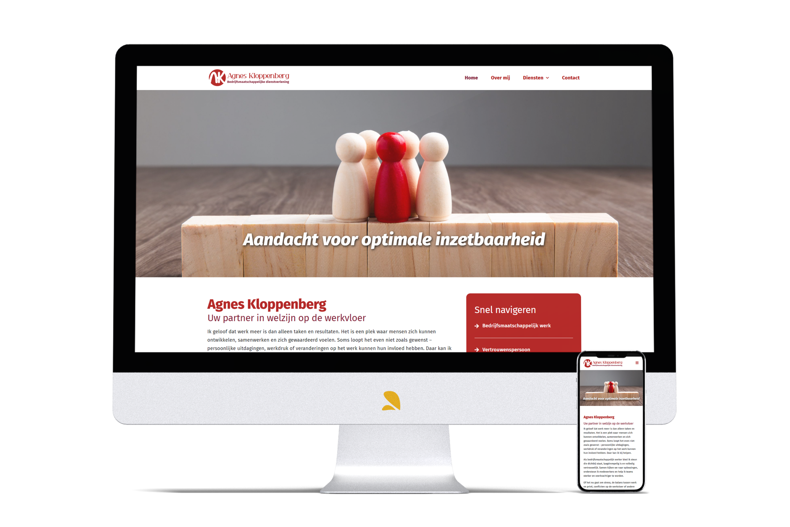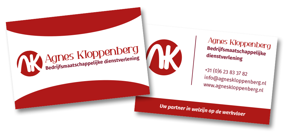 Voor Agnes Kloppenberg mochten wij de volledige visuele identiteit verzorgen: van logo en visitekaartjes tot een overzichtelijke, eigentijdse website. Agnes biedt bedrijfsmaatschappelijke ondersteuning die dichtbij staat, laagdrempelig is en volledig vertrouwelijk. Met een duidelijke en warme uitstraling sluit de huisstijl perfect aan bij haar missie: mensen ondersteunen op de werkvloer met aandacht en vertrouwen. Dankzij de nieuwe website kan Agnes vol vertrouwen haar eigen onderneming presenteren en écht zichtbaar worden voor haar doelgroep.